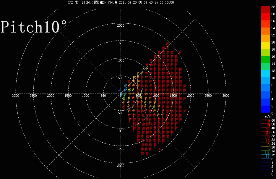 图5:7255时10分测风激光雷达10°仰角水平风场图