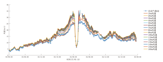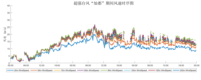 2021年第14号台风“灿都”过境期间各高度层风速变化时序图
