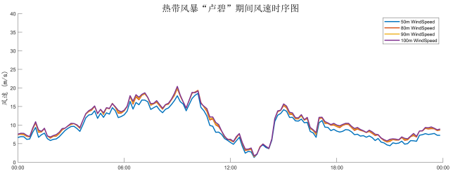 2021年第9年台风“卢碧”过境期间各高度层风速变化时序图