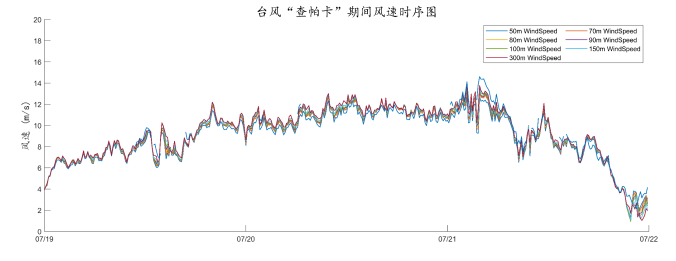 2021年第7号台风“查帕卡”过境期间各高度层风速变化时序图